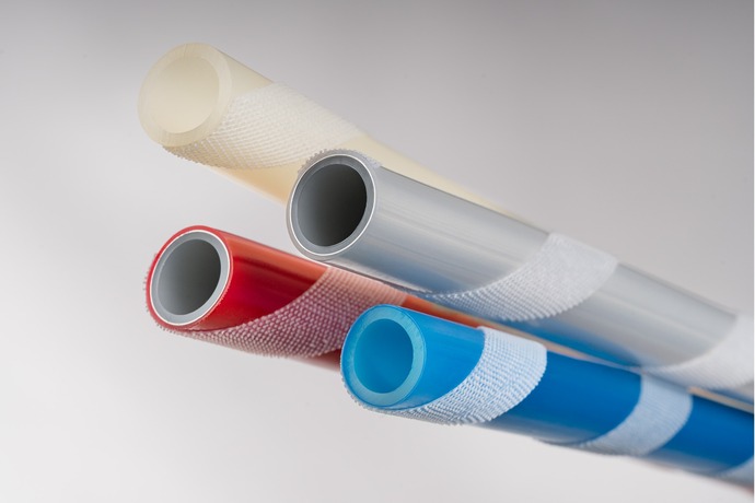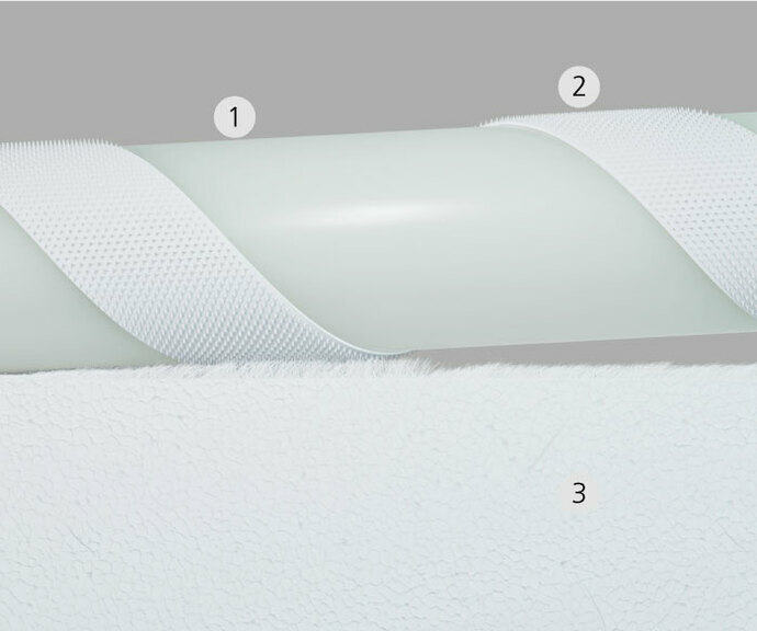 The underfloor heating pipe with perfect adhesion. Our five-layer solid plastic pipes with wrapped Velcro tape are particularly easy and quick to install thanks to the one-man installation. For particularly efficient and economical installation. In addition to PE-RT and PE-Xc all-plastic pipes, composite metal pipes can also be assembled using the Velcro system.